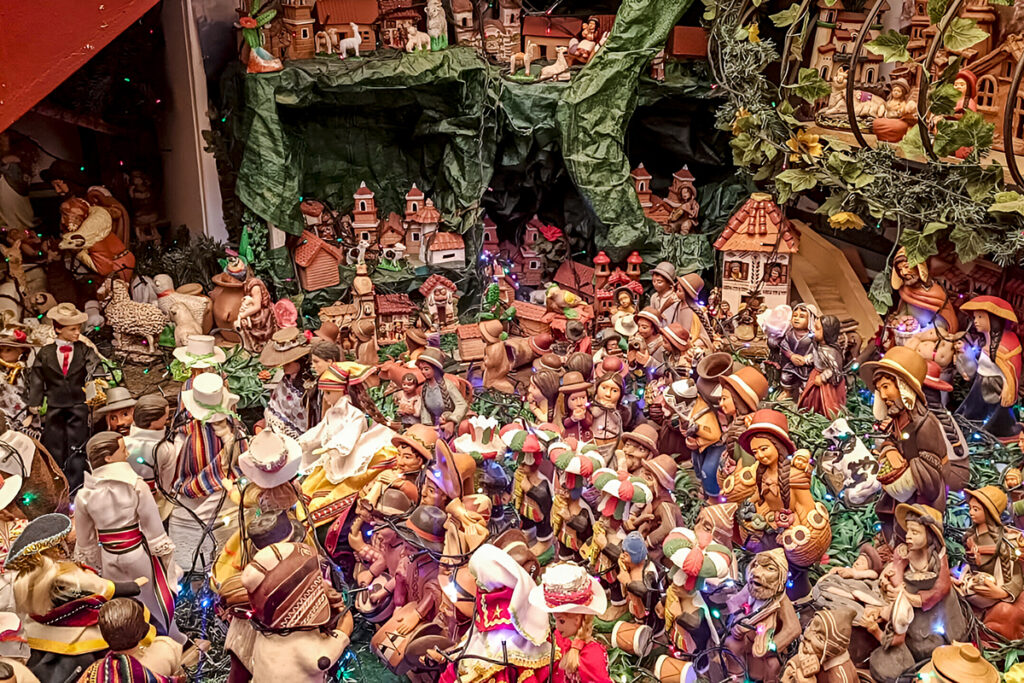 Además del tradicional pesebre, acompañan al nacimiento otras escenas como: la Navidad ayacuchana y la Navidad de los negritos. En ambos espacios se cuentan con delicadas artesanías que muestran tradiciones peruanas. En otro de los espacios se puede observar a un grupo de bailarines de marinera norteña que rinden homenaje al niño Jesús.