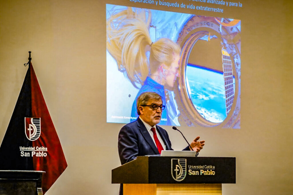 En la charla realizada en la UCSP, también expuso Rosa de la Torre, del Instituto Nacional de Técnica Aeroespacial, quien presentó la ponencia: “Los límites de la vida en el espacio y Marte: Líquenes como sistemas modelo en misiones espaciales”.