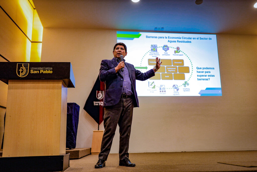 Montalvo, durante su participación en Universitas 2024, señaló que el estrés hídrico es uno de los problemas desencadenados por el cambio climático. Y si se aplica la economía circular se pueden reaprovechar las aguas residuales.