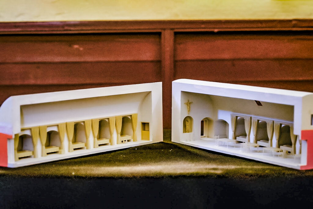 Las maquetas finales fueron impresas en el laboratorio de prototipado de la San Pablo, gracias a un financiamiento institucional y fueron realizadas tras aproximadamente un año de trabajo por proyecto, para el cual se contó con el apoyo contante de las madres de la congregación dominica, así comode la administracióndel Monasterio turístico.