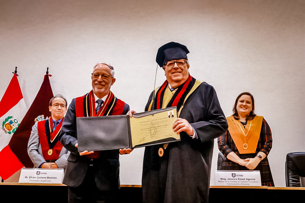 Acotó que, a partir de ahora, Velarde Flores es miembro pleno de la San Pablo al formar parte de su claustro docente.
