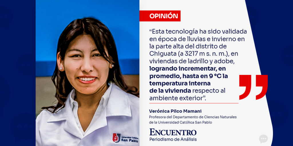 Es aquí donde las universidades cobran un rol relevante, en el desarrollo de tecnologías que brinden mejores condiciones para enfrentar los embates del clima y en la formación de personas, con el fin de generar conocimiento y plasmarlo en modelos tecnológicos funcionales. Frente a esta realidad, un grupo de investigadores interdisciplinarios de la Universidad Católica San Pablo desarrolla proyectos de investigación referidos a tecnologías para el mejoramiento térmico de las viviendas. El fin es proteger a las personas ante temperaturas extremas, promover la eficiencia energética y la economía circular.