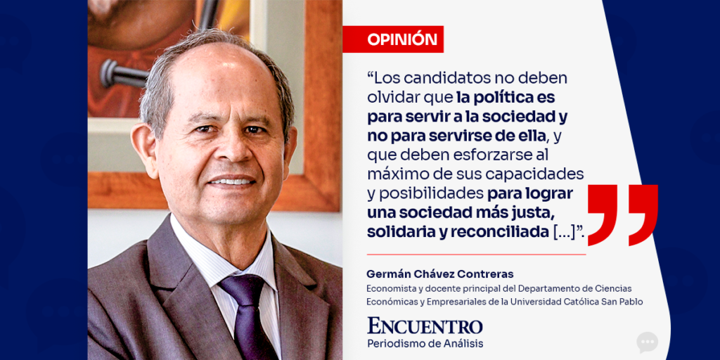 De igual forma, se debe trabajar con seriedad por la estabilidad jurídica, la permanente lucha contra la inseguridad ciudadana y el respeto a la Constitución peruana. Solo así podremos mantener la robustez de nuestros fundamentos macroeconómicos, indispensables para lograr el crecimiento sostenido de la economía y mejorar las condiciones de vida de las personas, aportando al bien común. Los candidatos no deben olvidar que la política es para servir a la sociedad y no para servirse de ella, y que deben esforzarse al máximo de sus capacidades y posibilidades para lograr una sociedad más justa, solidaria y reconciliada, es decir, una sociedad con condiciones más humanas para todos.