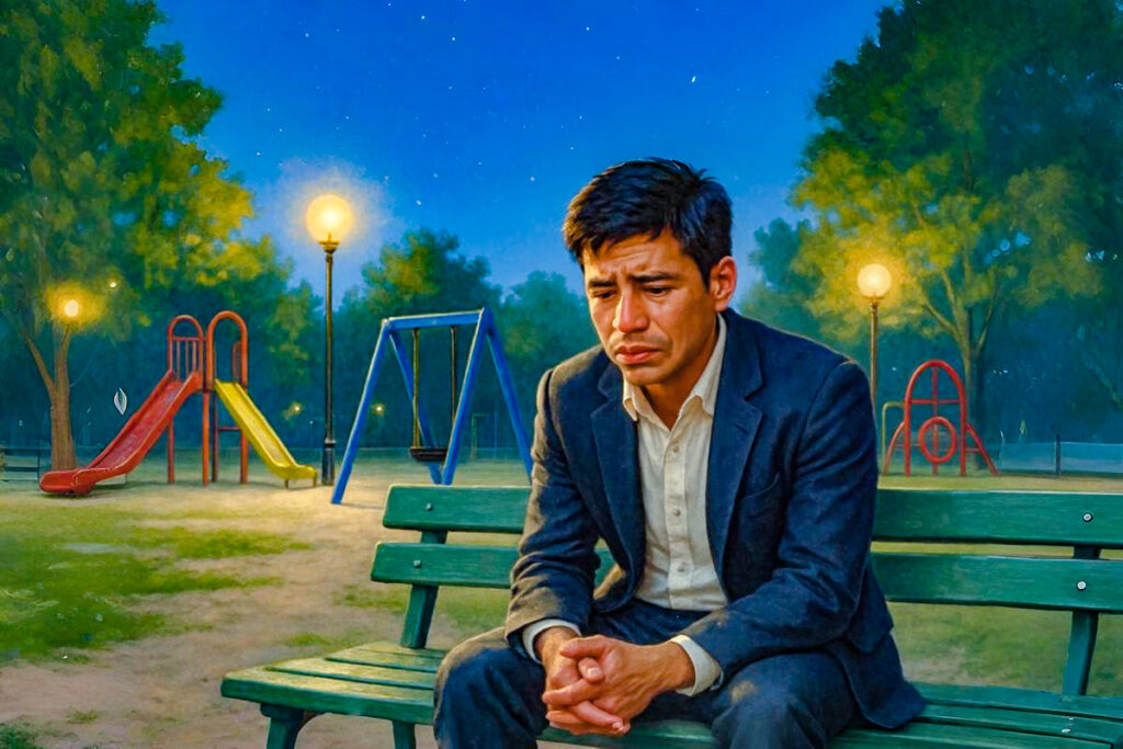 Camino sin rumbo y llego a un parque. Me siento en un banco y lloro. Después de un rato, alzo la vista. Es el lugar donde solía jugar con mis padres. Recuerdo la ocasión en que mi queso helado se cayó al suelo y mi padrastro me dio el suyo.