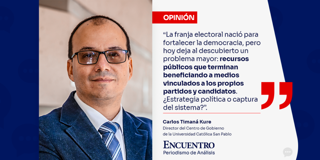 La franja electoral ilustra bien este desvío. Concebida para garantizar presencia en medios y redes, su lógica era obvia: colocar mensajes donde haya audiencia. El escándalo reciente revela algo distinto: la canalización de recursos hacia medios vinculados a los propios candidatos o partidos, actuales o pasados. No es estrategia; es captura.