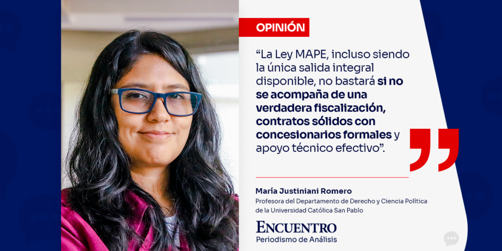 La Ley de Minería Artesanal y de Pequeña Minería (Ley MAPE) se presenta como la gran esperanza para revertir esta situación. Sin embargo, lejos de ser una solución estructural, corre el riesgo de convertirse en otra promesa inconclusa. Hasta ahora, ninguna propuesta ha logrado articular los intereses de todos los actores involucrados ni garantizar sostenibilidad ambiental, estabilidad social o desarrollo nacional. Al contrario, el proceso de formalización parece haber mutado en un mecanismo que protege actividades informales, cuyos límites se confunden frecuentemente con la ilegalidad.