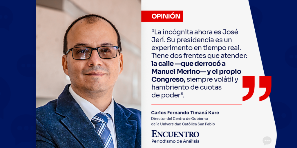 La incógnita ahora es José Jerí. Su presidencia es un experimento en tiempo real. Tiene dos frentes que atender: la calle —que derrocó a Manuel Merino— y el propio Congreso, siempre volátil y hambriento de cuotas de poder. Para sobrevivir, Jerí deberá formar un gabinete que contente a sus pares, donde todos se sienten presidenciables, y convencerlos de que es el “mal menor”. No es poca cosa.
