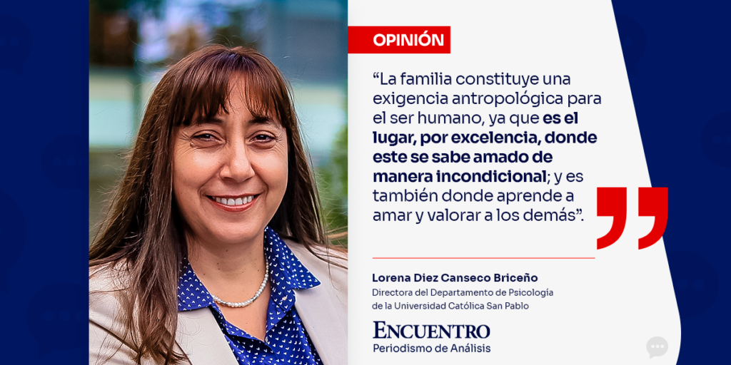 La familia constituye una exigencia antropológica para el ser humano, ya que es el lugar, por excelencia, donde este se sabe amado de manera incondicional; y es también donde aprende a amar y valorar a los demás. Asimismo, la familia es su principal educadora, al ser la primera instancia en la que se transmiten auténticos valores humanos y sociales.