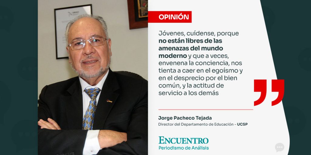 En estas circunstancias, me dirijo a esos jóvenes para que se sientan valorados, respetados y animados en su compromiso a favor de la sociedad peruana. Tienen que saber, que el esfuerzo en su preparación y la experiencia que acumulen, es señal de que están haciendo rendir sus talentos.