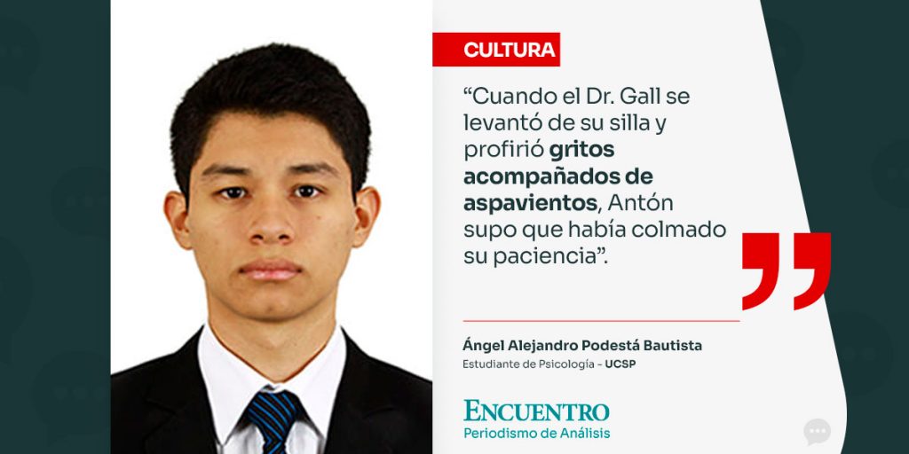 Cuando el Dr. Gall se levantó de su silla y profirió gritos acompañados de aspavientos, Antón supo que había colmado su paciencia. Por primera vez en su clase, alguien se había atrevido a contradecir sus enseñanzas y rebatir sus argumentos. Antón había sugerido —contrario a lo que exponía en ese momento el Dr. Gall— frente a decenas de alumnos, que las características de la mente no podían estar fragmentadas en partes y que era imposible pensar que estas dependieran de las formas del cráneo.