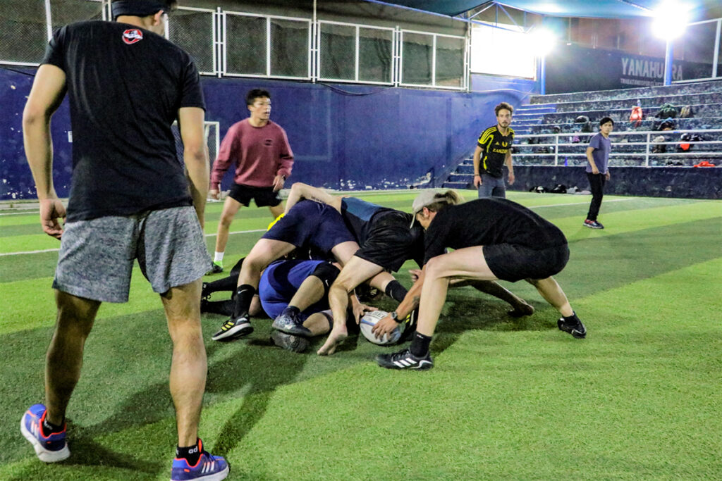 En horas de la noche, llegan al complejo deportivo Magnopata jóvenes de todas las edades para practicar rugby. Se escucha el pitazo que da inicio al entrenamiento y la pelota empieza a volar, los jugadores corren de un lado a otro y realizan pases hacía atrás y en diagonal.