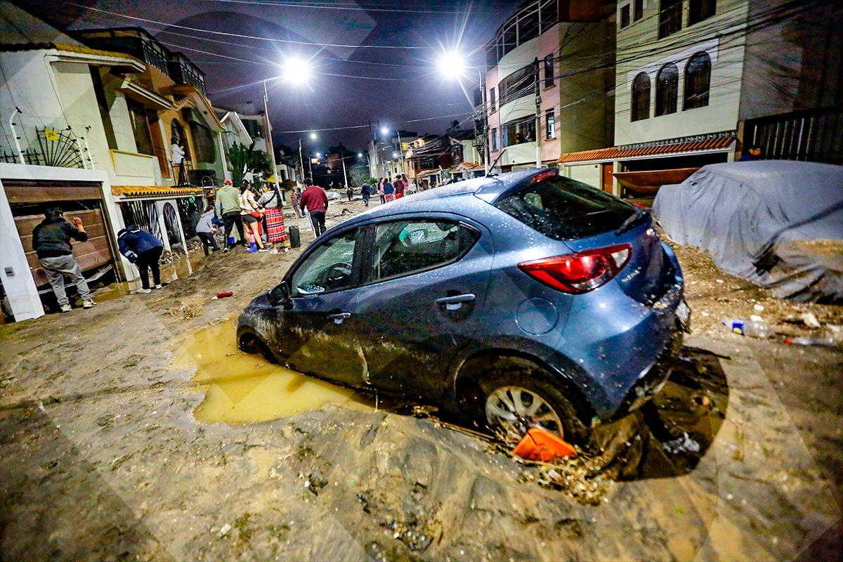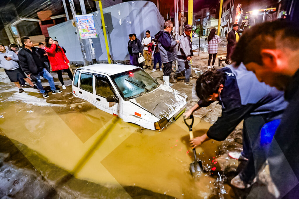El desborde de la torrentera de la calle Chullo dejó numerosos vehículos inutilizados.