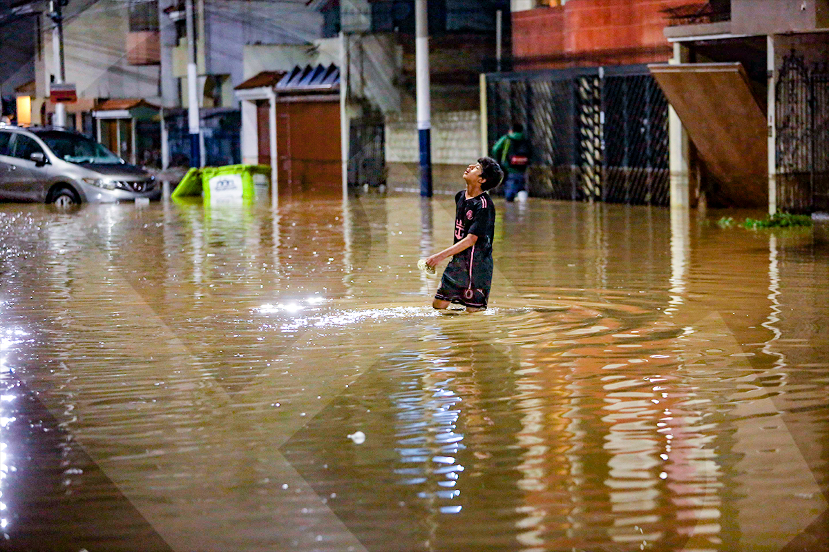En las calles, el agua alcanzó las rodillas de los damnificados.
