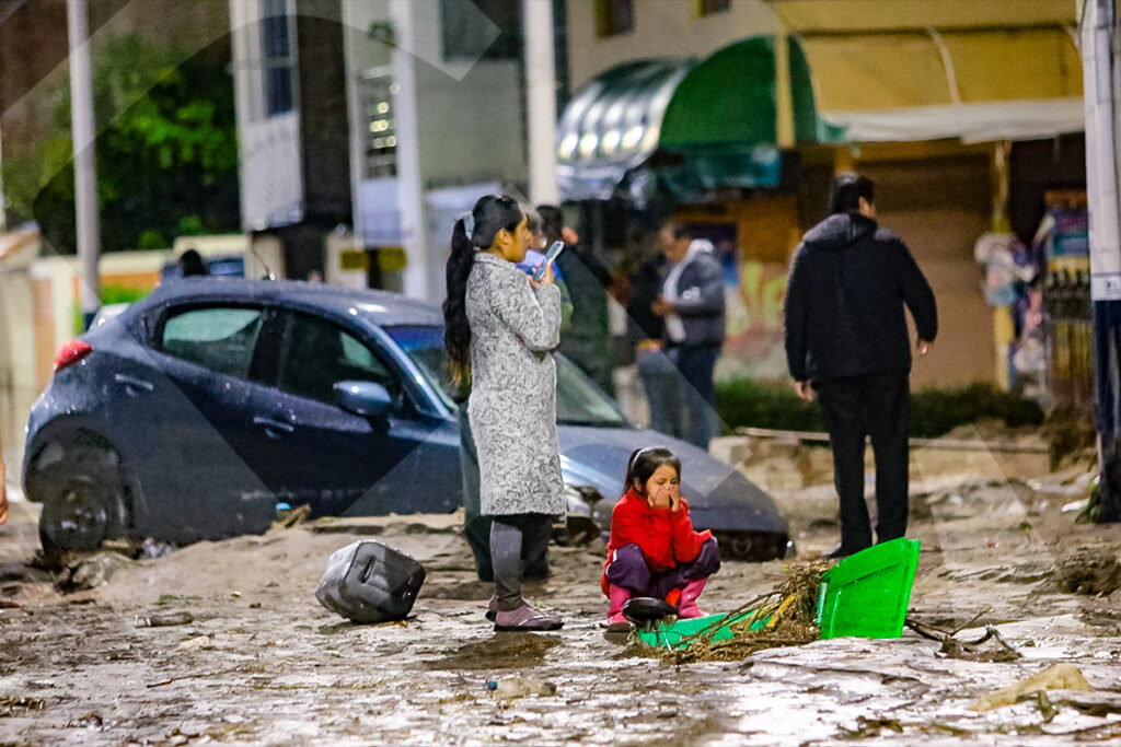 Una pequeña muestra su dolor al presenciar el desastre provocado por el clima en la Ciudad Blanca.