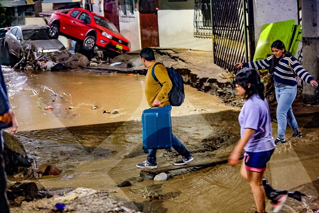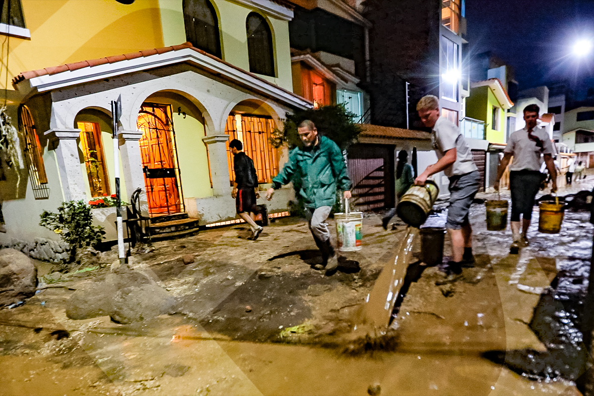 Las intensas lluvias provocaron el colapso de las torrenteras, que ingresaron con lodo y piedras a las urbanizaciones de Cayma, Yanahuara y Cerro Colorado, causando destrozos a su paso y dejando varios vehículos destruidos. Según el reporte, hay dos muertos y decenas de damnificados.