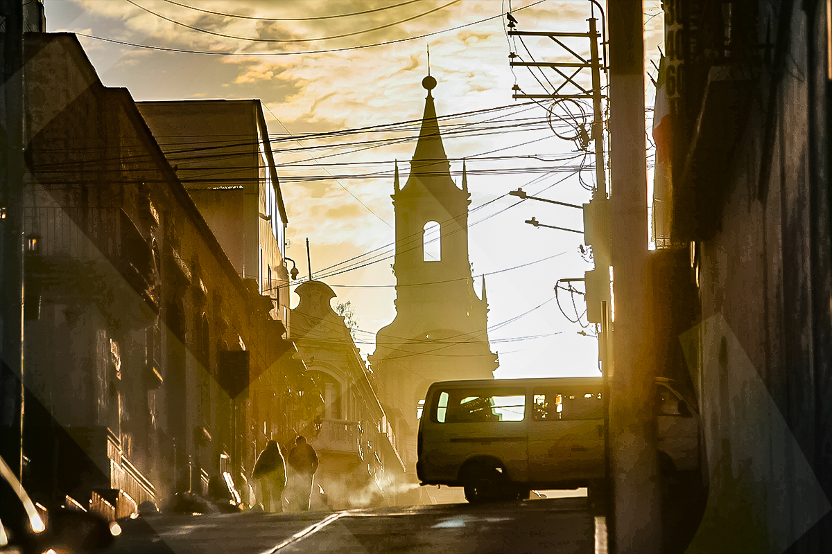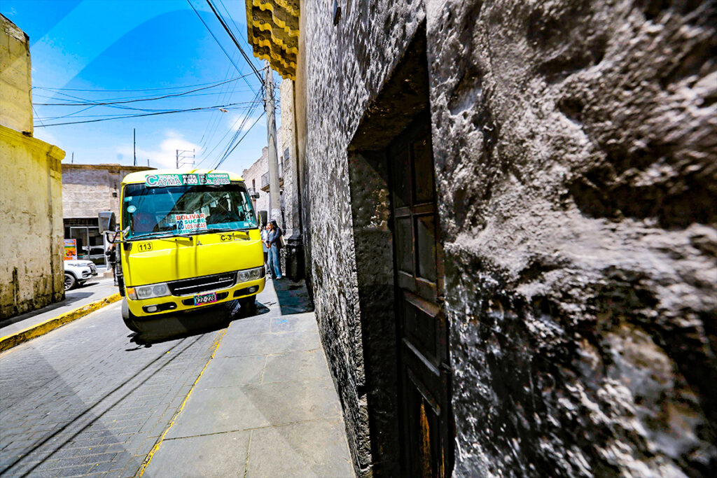 El blanco del sillar en la calle Bolívar hoy está teñido de negro por el humo que genera el vetusto parque automotor.