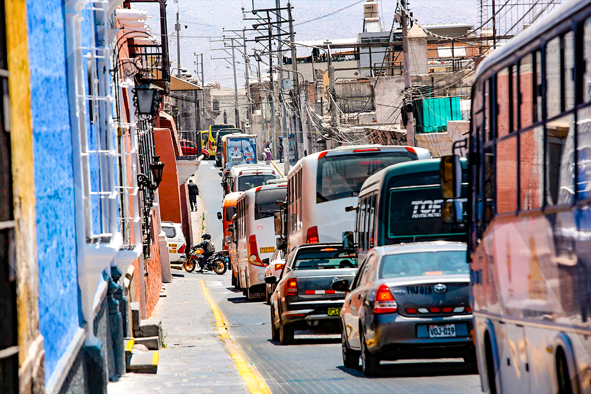 En horas punta, el Cercado de Arequipa es intransitable. Las calles del centro histórico soportan una agobiante congestión vehicular.