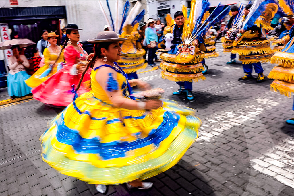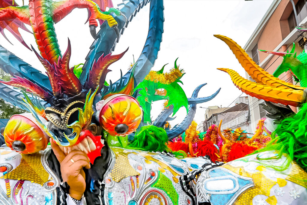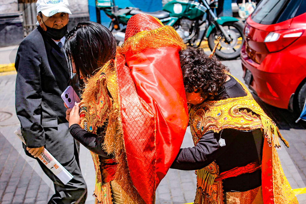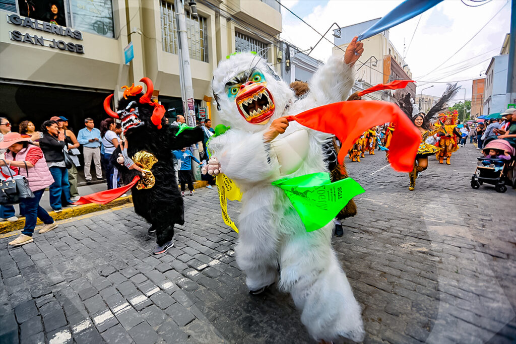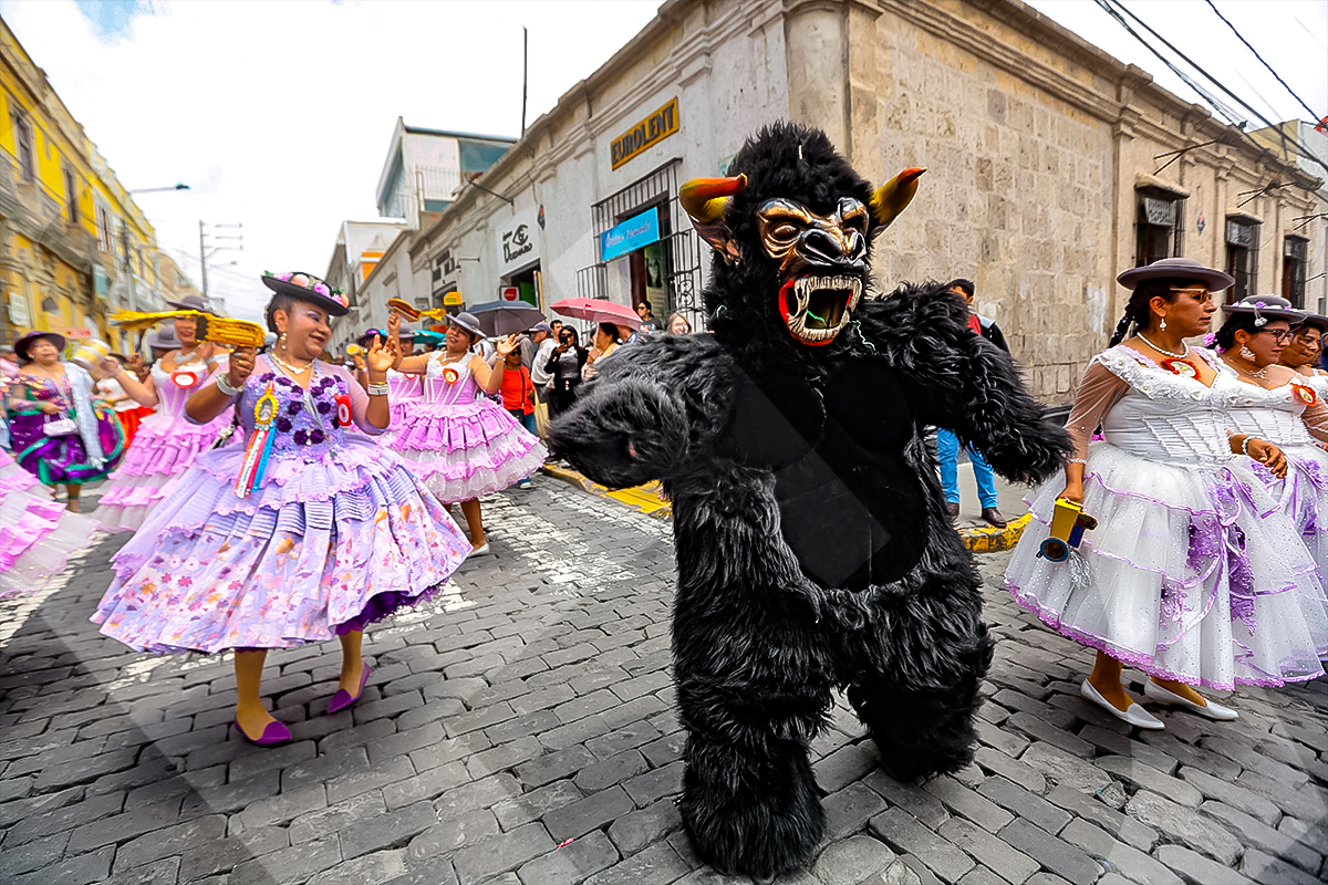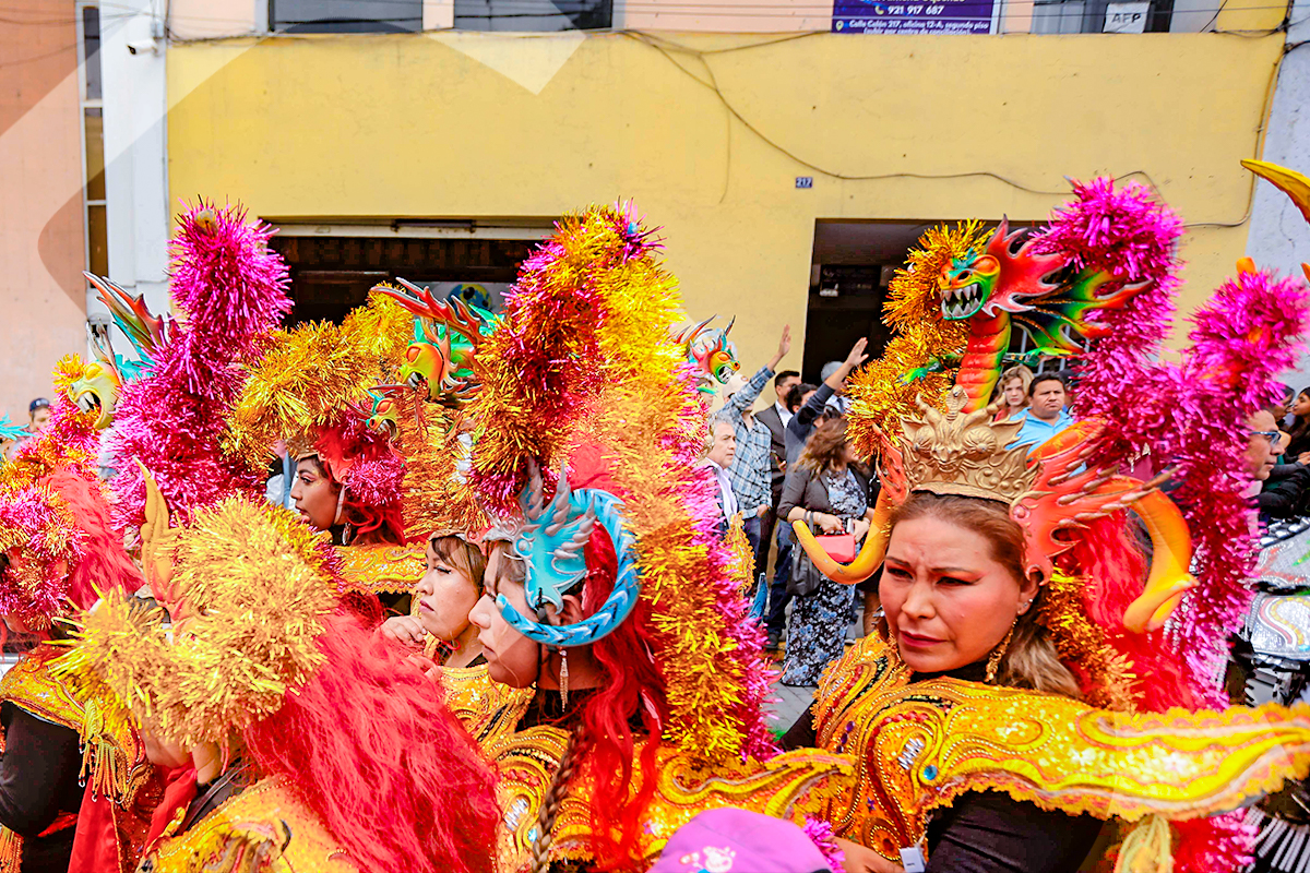 Durante la misa de celebración de la Virgen de la Candelaria, los fieles se alistan para danzar en su honor.Las máscaras de la morenada reposan en el suelo mientras un danzante practica sus pasos para el recorrido.A la salida de la sagrada imagen, cientos de fieles se acercan a su anda mostrando su fe y devoción.Cada 2 de febrero, los devotos de la Virgen de la Candelaria se congregan en la iglesia de Santa Marta para celebrar una misa, seguida de un pasacalle.La danza típica de la diablada, con sus máscaras características, no faltó en el acto de veneración a la Candelaria.Las calles céntricas de la Ciudad Blanca se llenaron de color y fervor durante el pasacalle en homenaje a la Virgen.Las llamativas máscaras de los osos constituyen uno de los sellos tradicionales del pasacalle dedicado a la Mamita Candelaria.Los osos, con sus peculiares pasos, se ganaron la atención y el aplauso de los espectadores.Durante el recorrido, las diferentes danzas despertaron la ovación del público.La fiesta se trasladó a las calles, con el colorido particular de las agrupaciones que danzaban, celebrando a la Virgen.Las bandas de música marcaron el ritmo y la alegría, acompañando las distintas danzas que se presentaron.Las polleras, con su bamboleo y colores llamativos, fueron expresión de alegría y devoción.Rostros llenos de color se fundían armoniosamente con los trajes de luces del pasacalle.