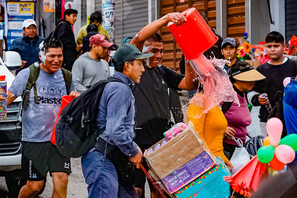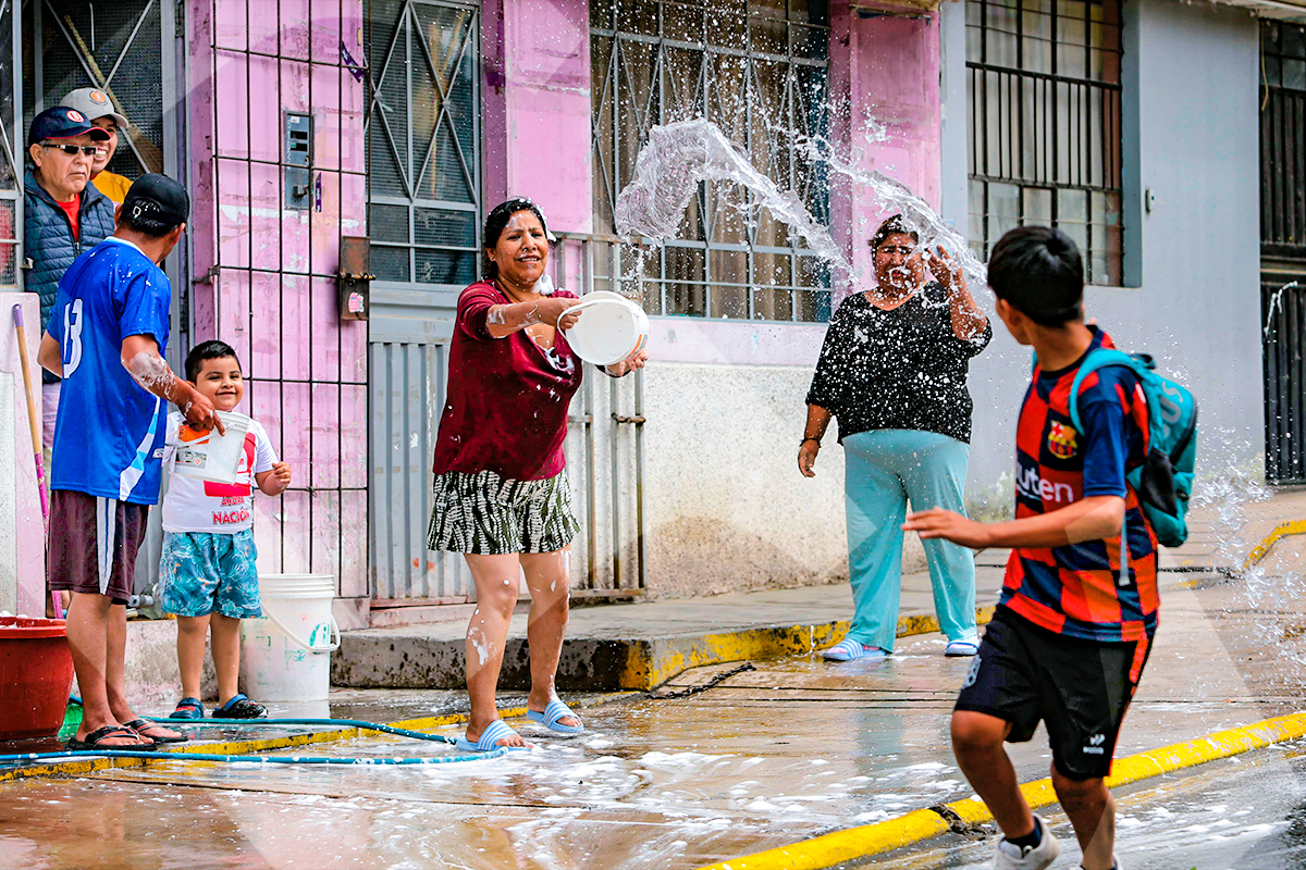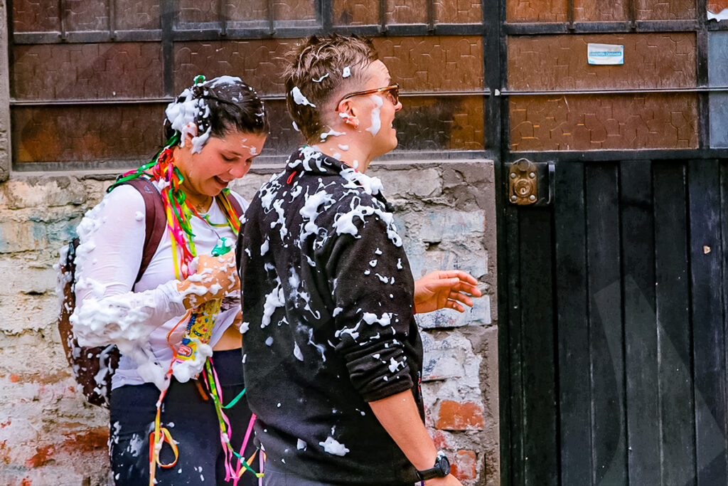 No todos jugaron con espuma, algunos sorprendieron a los asistentes con un baldazo de agua fría.