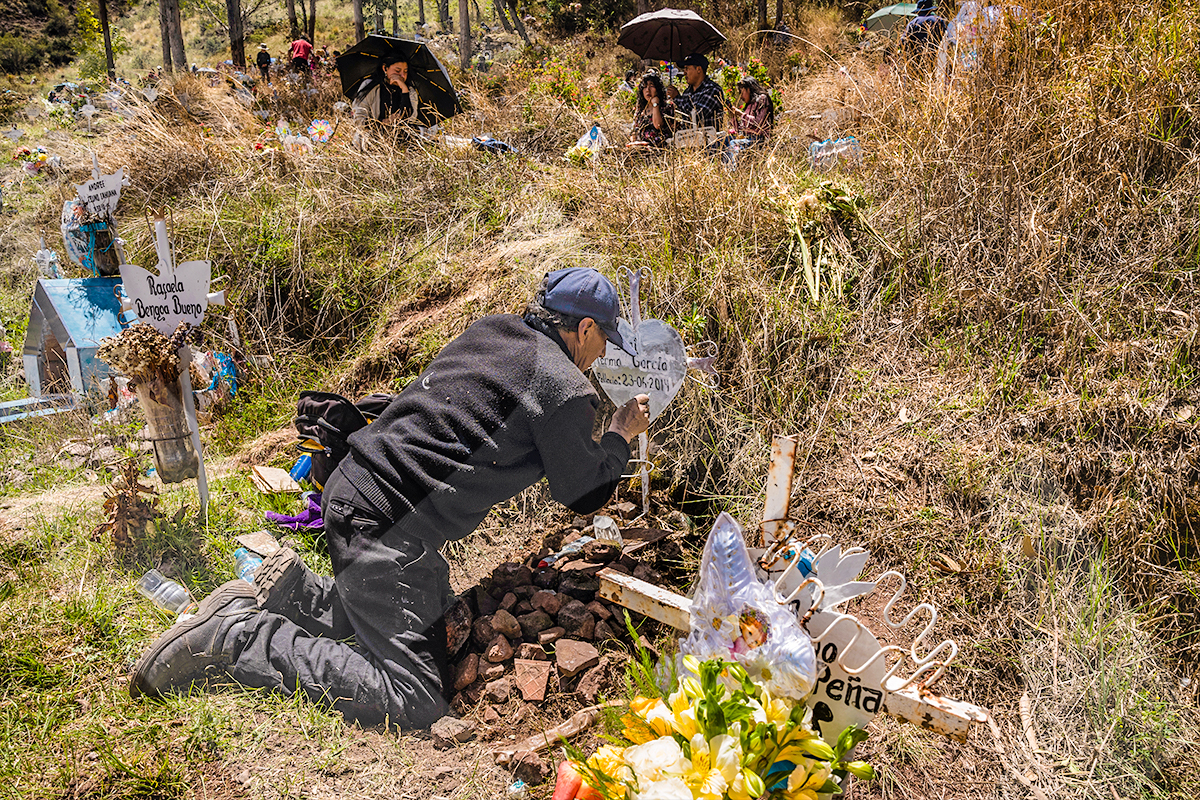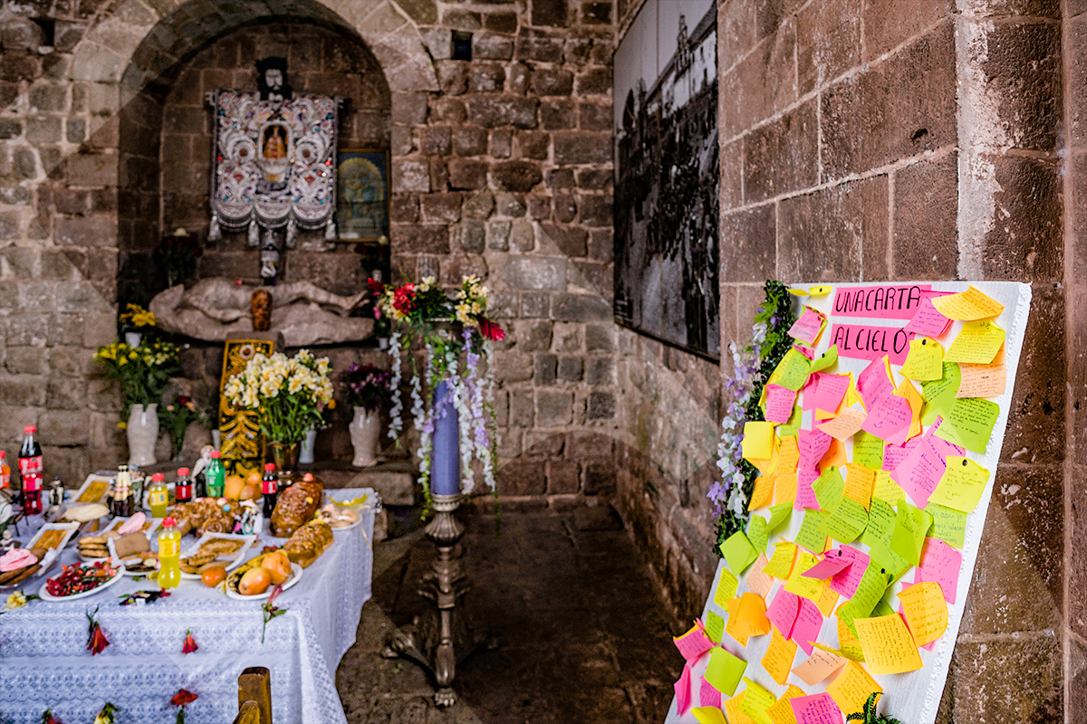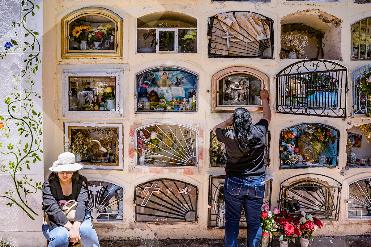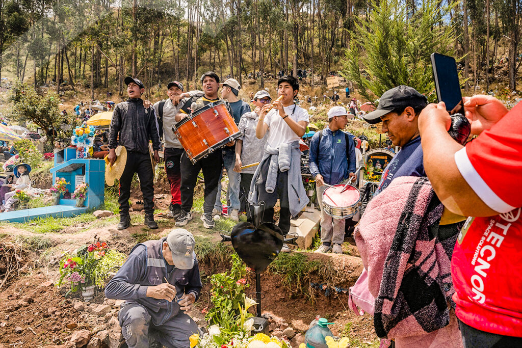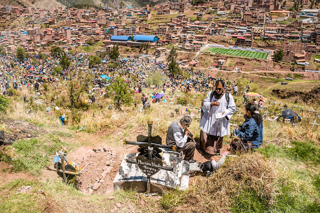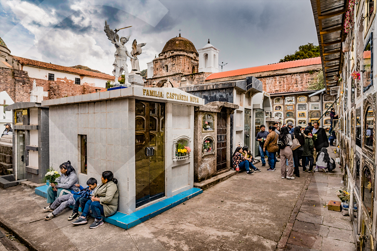 Miles de familias acudieron al cementerio de Huancaro para visitar y recordar a sus difuntos.Varios grupos de músicos recibieron a los visitantes en el camposanto más grande de la Ciudad Imperial.Una familia llega al cementerio de Huancaro para sepultar a su ser querido. Entre danzas y música lo trasladan al terraplén donde será enterrado.Los visitantes dedican gran parte de su tiempo a arreglar los nichos, decorándolos con objetos simbólicos.Desde las primeras horas de la mañana, con el calor de la temporada en el ande, los deudos acompañan a sus muertos hasta el final del día.Una parte importante de la jornada consiste en la preparación de un altar con los alimentos y bebidas que el difunto apreciaba, así como con los panes especiales característicos de la fecha.Un familiar pinta la cruz de su ser querido. En los terraplenes hay diferentes tipos de tumbas y arreglos que muestran a Huancaro como un camposanto popular.No faltan las bandas de música que –por cinco soles– tocan diversas melodías que le gustaban al finado o que los parientes les dedican.A lo largo de la jornada, sacerdotes llegan al cementerio y ofrecen sermones y misas breves para los presentes.El pan guagua, o su complemento el pan caballo, son dulces que se preparan especialmente para esta fecha y se ofrecen a los finados.El cementerio Almudena, en el distrito de Santiago, también recibió a las familias que buscaron rendir tributo a sus fieles difuntos.El Almudena es el cementerio más antiguo del Cusco. Fue construido en 1850 por orden del beato Miguel Medina, ante la situación de insalubridad que vivía la ciudad en aquella época.En el Almudena suelen encontrarse nichos familiares, acompañados de esculturas y diversas figuras de mármol.A diferencia del cementerio de Huancaro, en el Almudena los pabellones son muy reducidos y las visitas son más breves.Una de las particularidades del Almudena es que cuenta con un pabellón de figuras emblemáticas de las artes y el pensamiento cusqueño. Este es el nicho de la escritora Clorinda Matto de Turner.Aquí también reposan los restos del reconocido fotógrafo Martín Chambi.A la salida del cementerio se aprecian los regalos, entre ellos bebidas y panes que se dejan en el atrio, así como mensajes de los visitantes.
