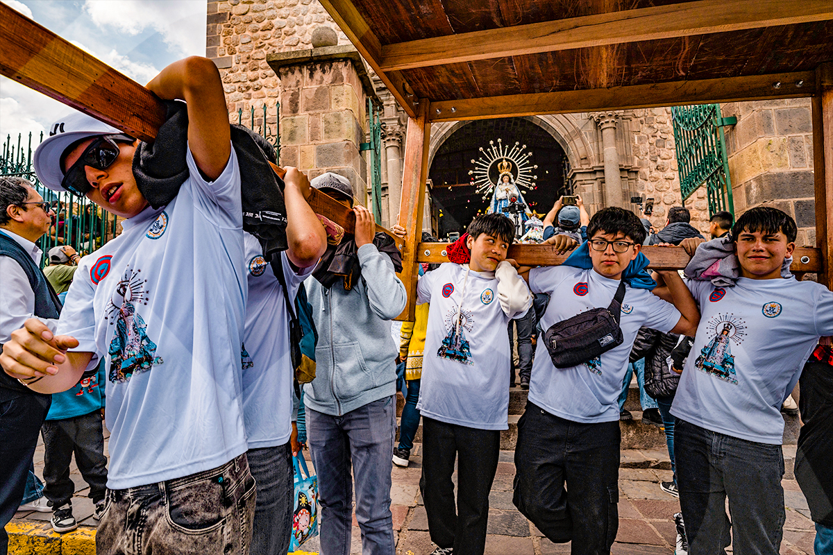La Virgen Inmaculada Concepción sale de la Basílica Catedral del Cusco para su procesión cada 8 de diciembre.Los hermanos Washington y Ronald Flores Matto, artesanos y artistas cusqueños, reciben la bendición para la imagen de la Virgen que conservan. Esta es una tradición heredada por su familia desde hace varias generaciones.La Virgen sale de la Catedral del Cusco y recorre las calles del Centro Histórico, realizando varias paradas durante su recorrido.Los cargadores de la Virgen descansan antes de continuar la procesión por las principales calles de la Ciudad Imperial.Una devota muestra el detente de la Virgen mientras la acompaña en procesión.La familia que asume el cargo de la festividad de la Virgen Inmaculada recorre en primera línea la procesión.Jóvenes y adultos se organizan para llevar en andas a la Virgen.Una de las figuras representativas de la danza de los Qhapac Qollas o Capac Collas es La Imilla, una danzante con el rostro cubierto.Alrededor del mediodía, la Virgen ingresa al templo de Santa Teresa, donde se realiza una misa.La comparsa de los Qhapac Qollas o Capac Collas, conocidos por su participación en la fiesta de la Virgen del Carmen, también acompaña a la Inmaculada.Los cargadores de la mesa de la Virgen acompañan la procesión en medio de alegría juvenil.La imagen conocida como “La Linda de la Catedral” destaca la pureza de la Virgen María desde su concepción.Comparsas de Chunchachas acompañan a la Virgen durante toda la procesión.