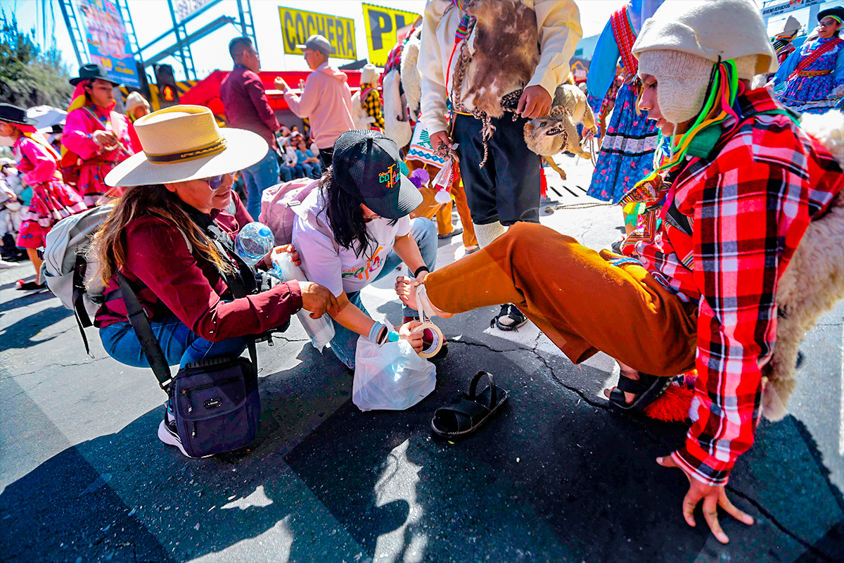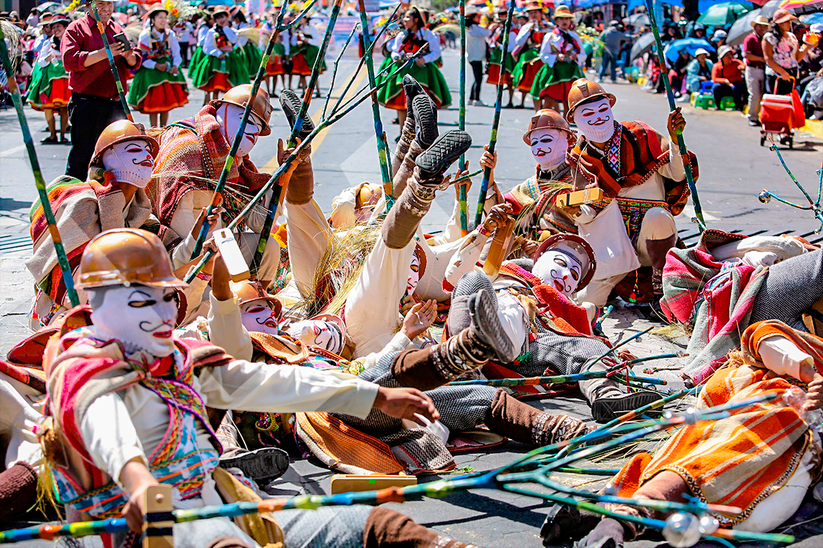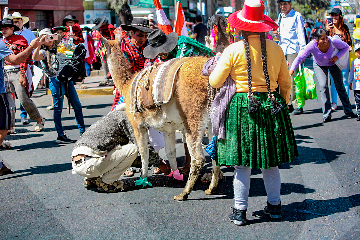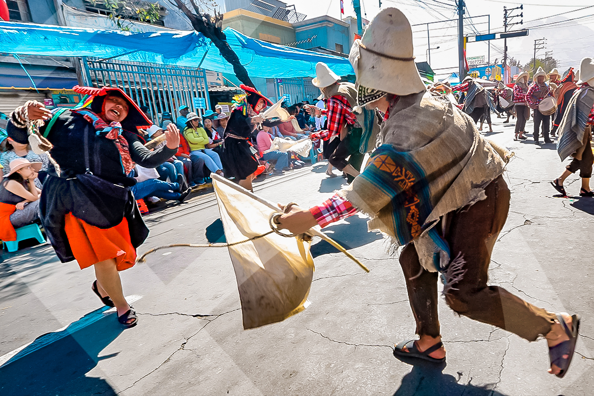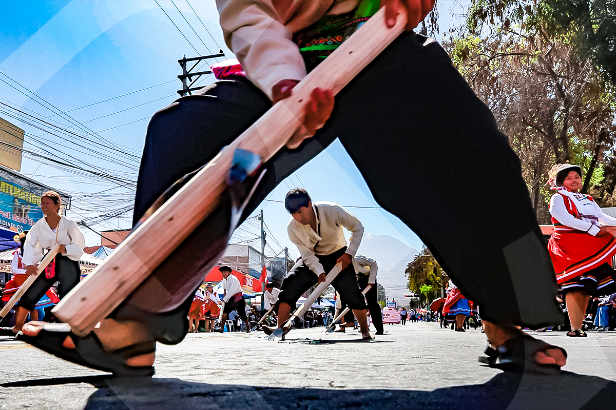 El distrito de Chachas, en la provincia de Castilla, estuvo presente con su danza sirwiy, que escenifica la siembra de maíz. A través de ella, la comunidad invoca protección para sus cultivos.La energía de los jóvenes se hizo notar en cada paso por la av. Independencia. Una clara muestra del entusiasmo y el cariño que manifiestan por la Ciudad Blanca.Descalzos, desafiando el ardiente asfalto y su capacidad física, varios danzarines entregaron hasta el último aliento.Los ganadores del pasacalle regional fueron los representantes del distrito de Cayarani (Condesuyos). Ellos presentaron la danza qashua tusuy.El distrito de Cotahuasi (La Unión) presentó una de las danzas más ovacionadas por el público: los llameritos de Tauría, con los estudiantes del colegio Mariscal Orbegoso.Varios de los participantes sufrieron las consecuencias del sobreesfuerzo físico y fueron asistidos por otros acompañantes.Machu Navidad, es la danza del distrito de Alca (La Unión). Estos enmascarados pusieron la cuota de alegría en el pasacalle regional.El distrito de Huaynacotas presentó ka’mate. Los jóvenes se pintaron los rostros para darle mayor realismo a sus personajes.La danza qaliwa del distrito de Quechualla (La Unión), simboliza el trabajo de hombres y mujeres en la recolección de uvas.Un danzarín pintado de negro se prepara para iniciar su participación en el concurso de danzas.Antes de iniciar su recorrido, un bailarín pinta las ojotas de blanco para uniformizar el atuendo de todo el grupo.De los pocos animales que utilizaron en el pasacalle regional. Unas llamas acompañadas por sus arrieros llamaron la atención del público.Lo negativo: inescrupulosos lotizaron algunos tramos de la av. Independencia para vender los asientos, varios no pudieron colocarlos entre el público.Debido al inclemente calor, los bomberos rociaron agua sobre el público. Los niños fueron los más emocionados.La destreza de este danzarín refleja el empeño que puso cada agrupación para lograr los primeros lugares en el pasacalle regional.El infaltable wititi de Chivay (Caylloma), con sus espectaculares trajes, contagió a todo el público que no dejó de aplaudir a los danzarines.