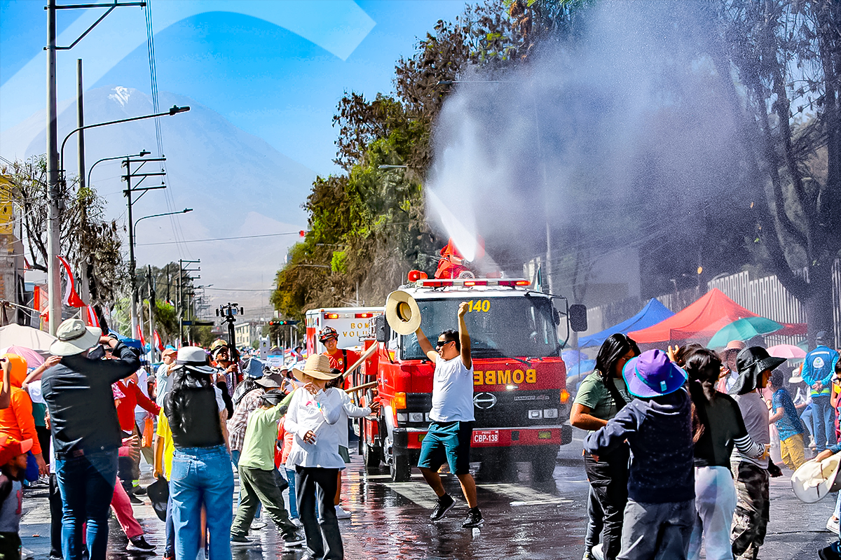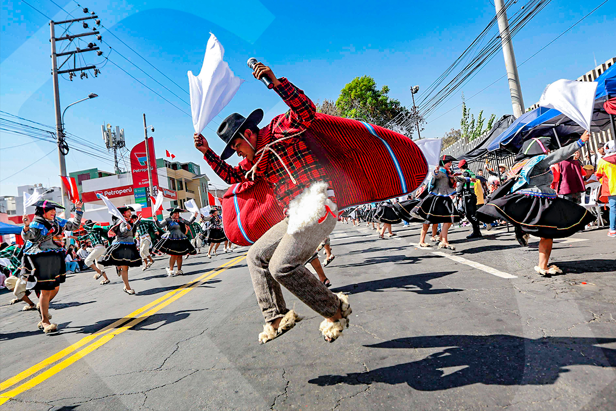Más de tres mil danzarines de diferentes provincias de la región participaron en un colorido pasacalle para saludar a la Ciudad Blanca por su aniversario. Las mejores delegaciones serán premiadas por el Gobierno Regional de Arequipa con obras para sus jurisdicciones.