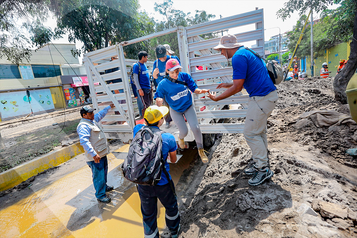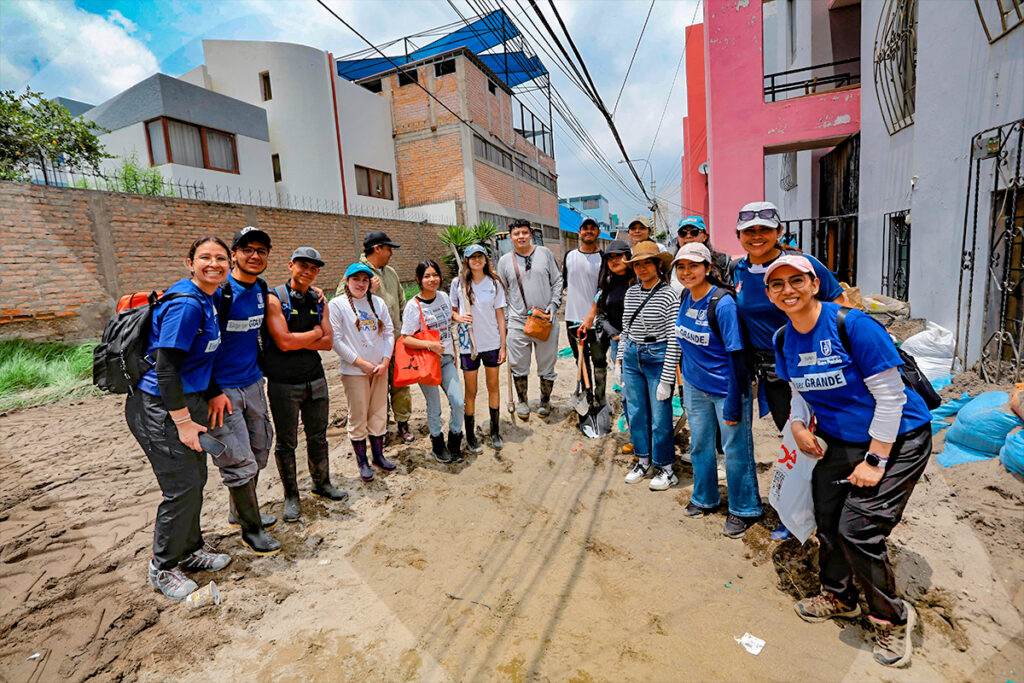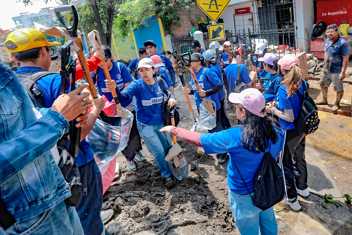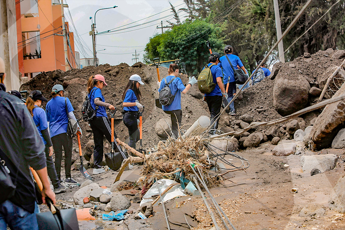 El voluntariado de la Universidad Católica San Pablo (UCSP) llegó hasta el complejo habitacional Flora Tristán para ayudar a las familias que lo perdieron todo por las intensas lluvias y huaicos que soporta la ciudad.