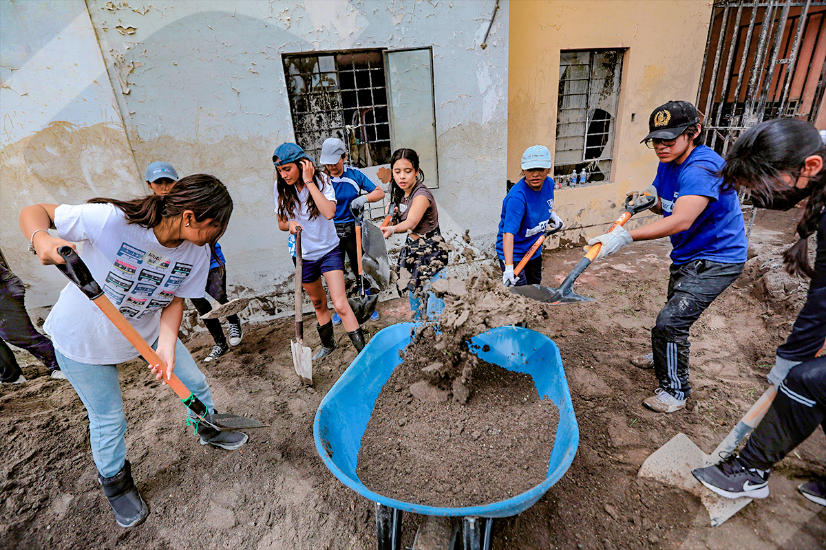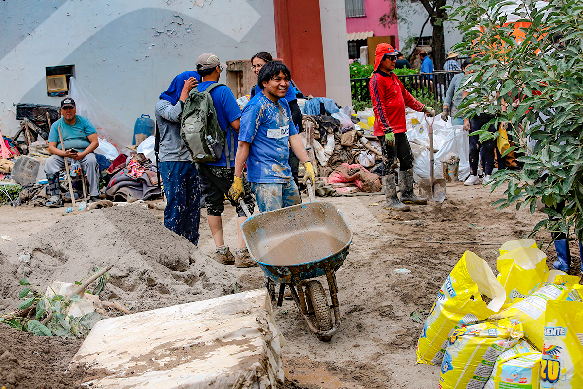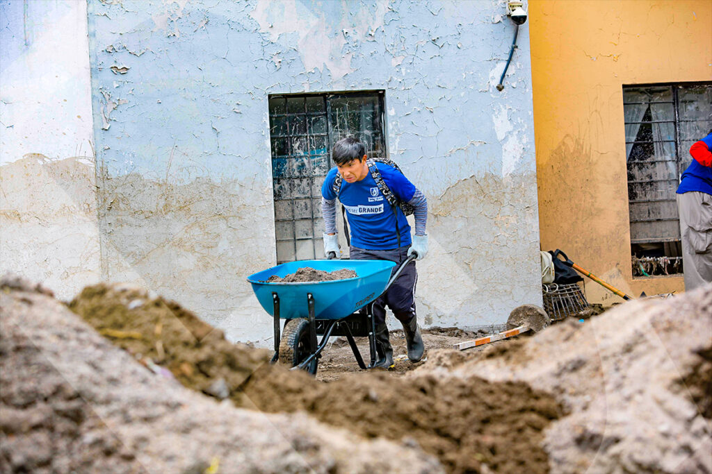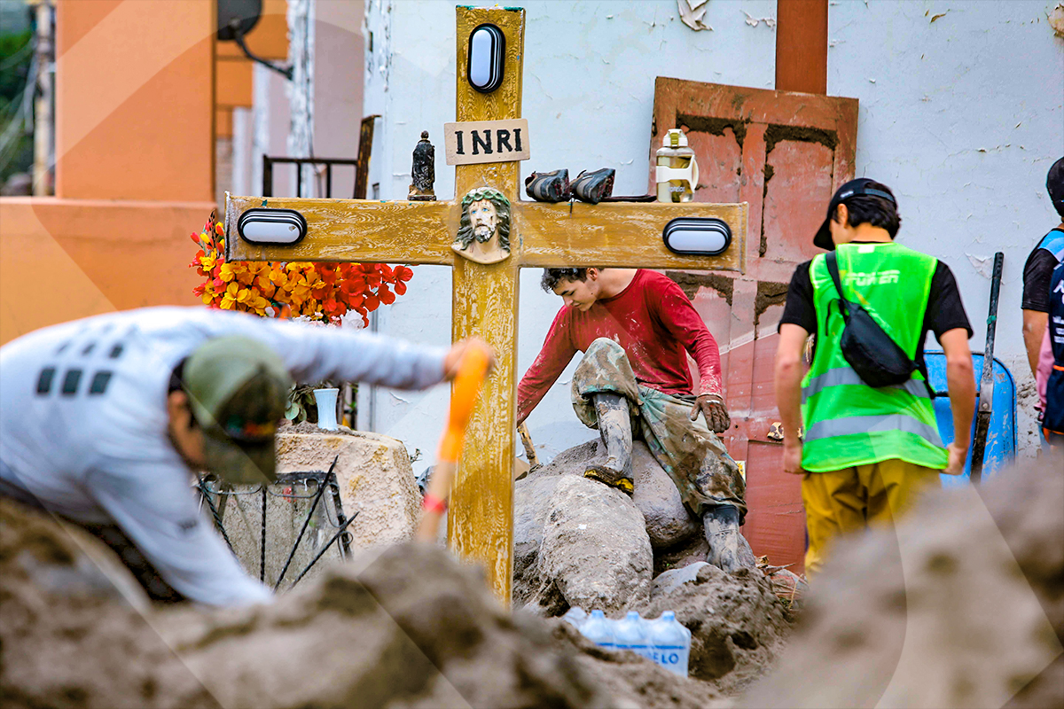 Los voluntarios de la Universidad Católica San Pablo llegaron hasta el complejo habitacional Flora Tristán.Equipados de lampas, los 50 voluntarios de la San Pablo se dispusieron a ayudar a los damnificados.Para llegar al lugar tuvieron que sortear los montículos de tierra que se encontraban en el camino de la av. Metropolitana.Con mucha disposición y empatía, los alumnos de la universidad hicieron denodados esfuerzos para ayudar a las familias.Mucha gente llegó para asistir a los damnificados, con alegría pese a la difícil circunstancia que vive Arequipa.Los departamentos estaban inundados; mientras retiraban el barro, los residentes lograban recuperar algunas pertenencias.La cruz del barrio Flora Tristán resistió al huaico y se mantuvo en pie, convirtiéndose en una señal de esperanza.Los 50 jóvenes que llegaron a ayudar a todas las familias mostraron su compromiso con la sociedad.Antes de la ardua labor, los estudiantes y administrativos de la universidad perennizan este momento de solidaridad.La imagen de la Sagrada Familia, rescatada del lodo, acompaña a este hogar que mantiene su fe en alto en momentos de dificultad.Algunas personas tuvieron que romper las ventanas para rescatar unas pocas pertenencias.Un joven, cubierto de barro pero con la alegría a flor de piel, fue lo más destacado de la jornada de voluntariado de la San Pablo.Una sociedad que se une para ayudar es lo que necesita Arequipa en estos momentos.