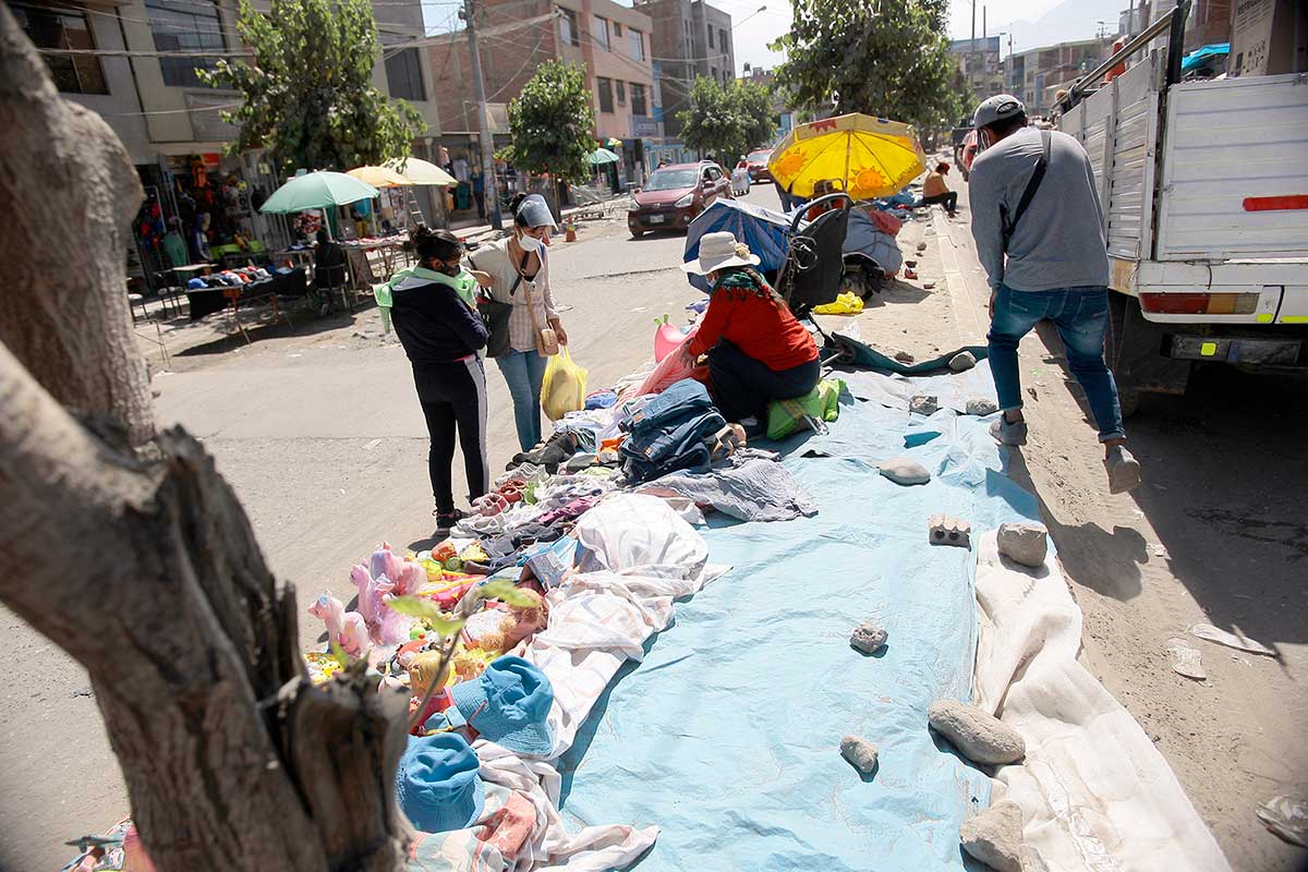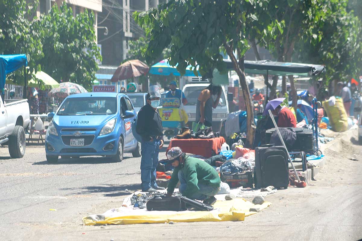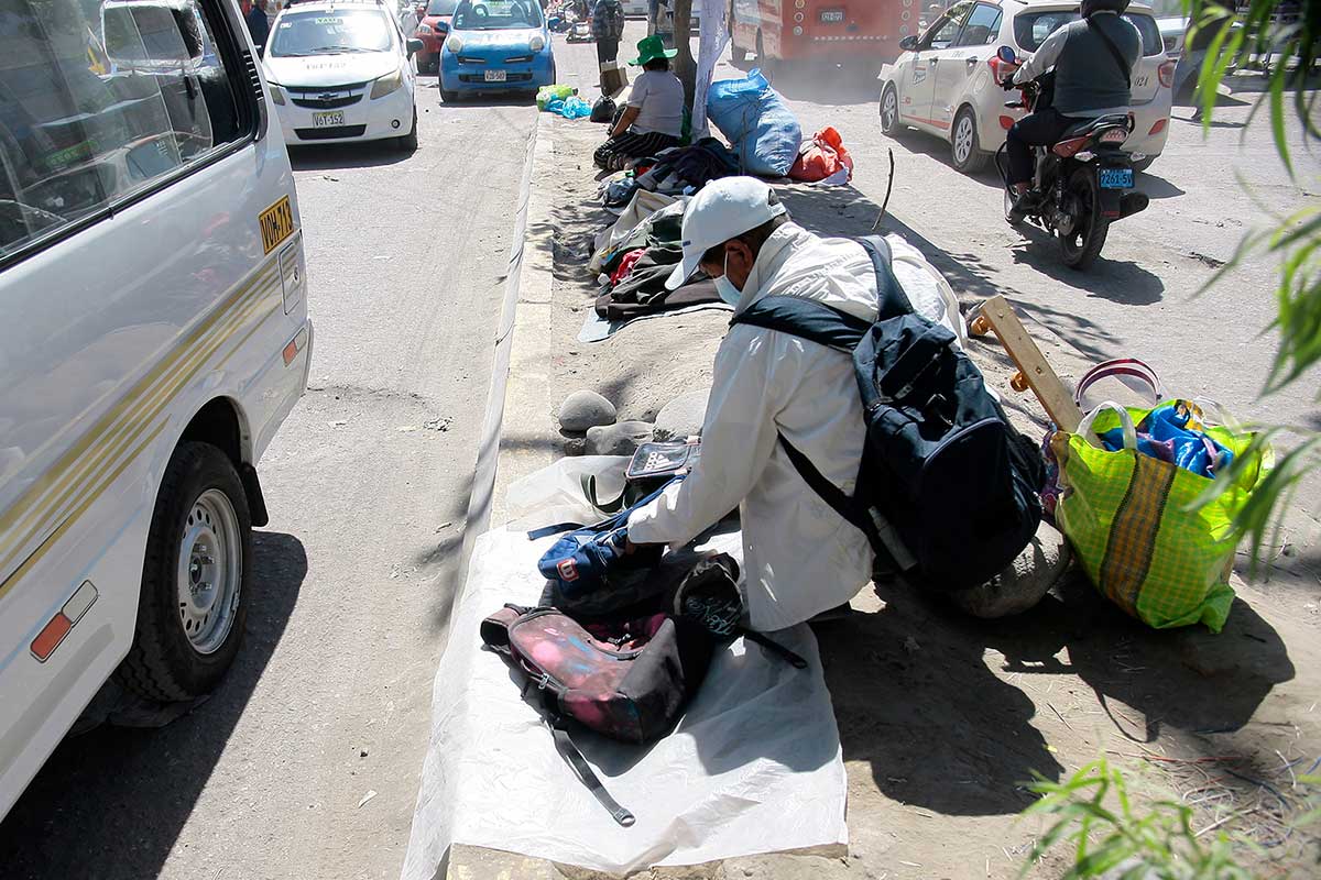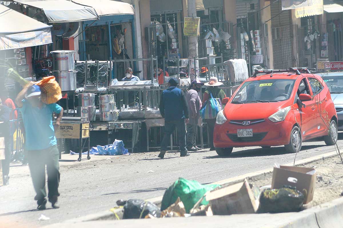 Sin importar la pandemia, los comerciantes exponen sus productos en el piso, sin ninguna medida de bioseguridad.