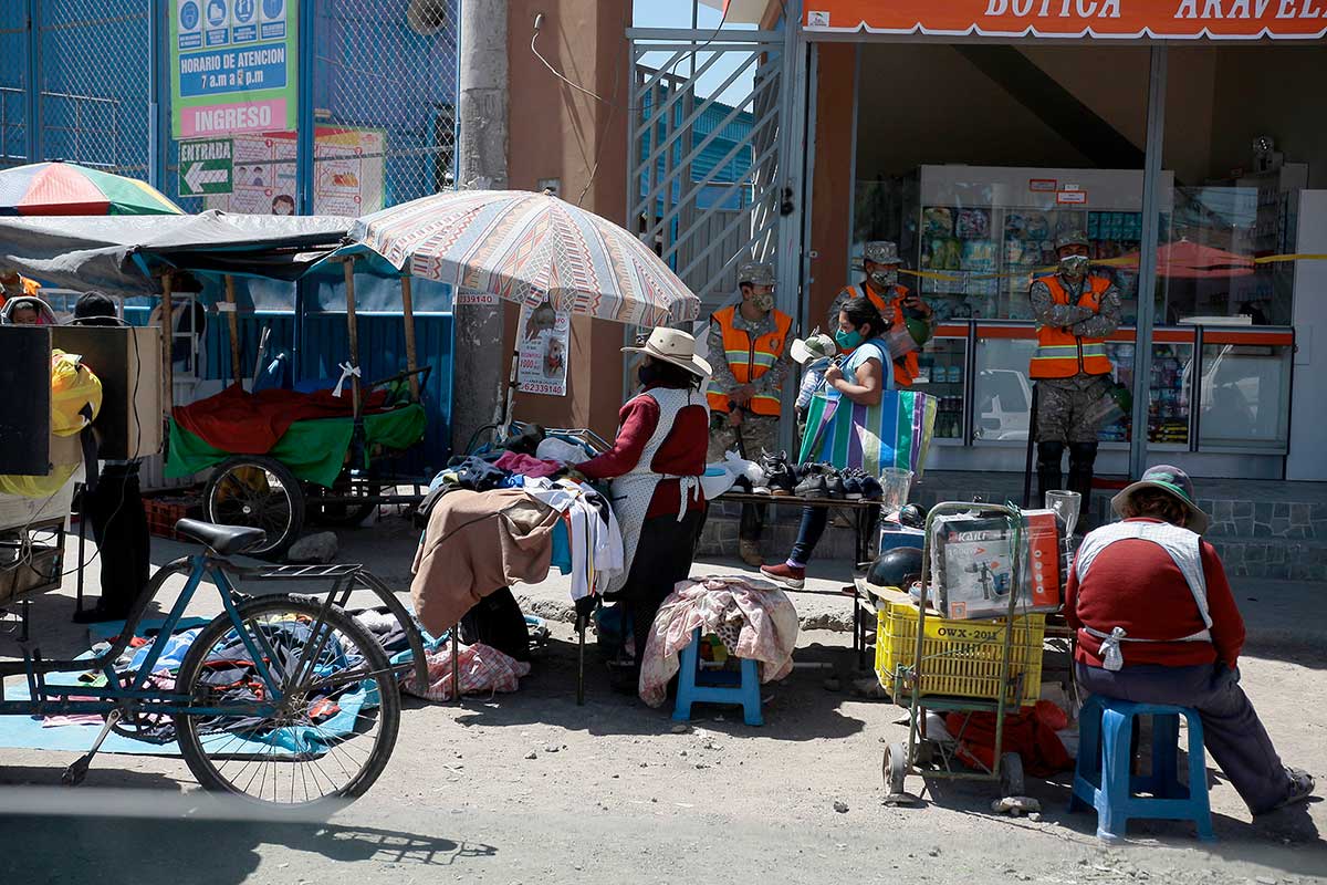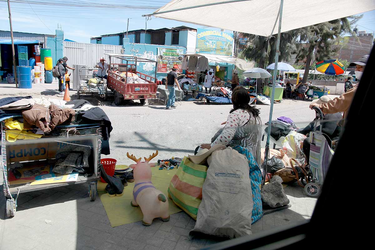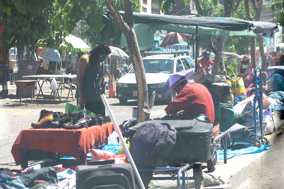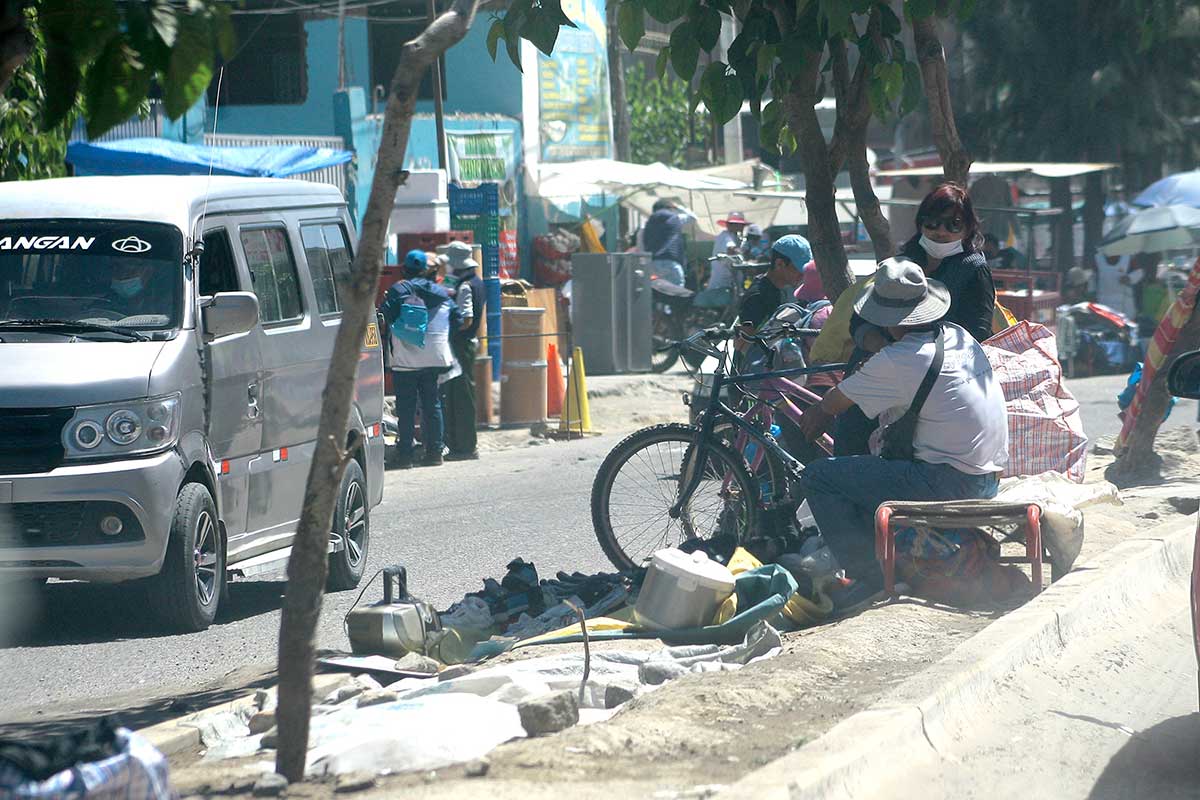 Sin importar la pandemia, los comerciantes exponen sus productos en el piso, sin ninguna medida de bioseguridad.