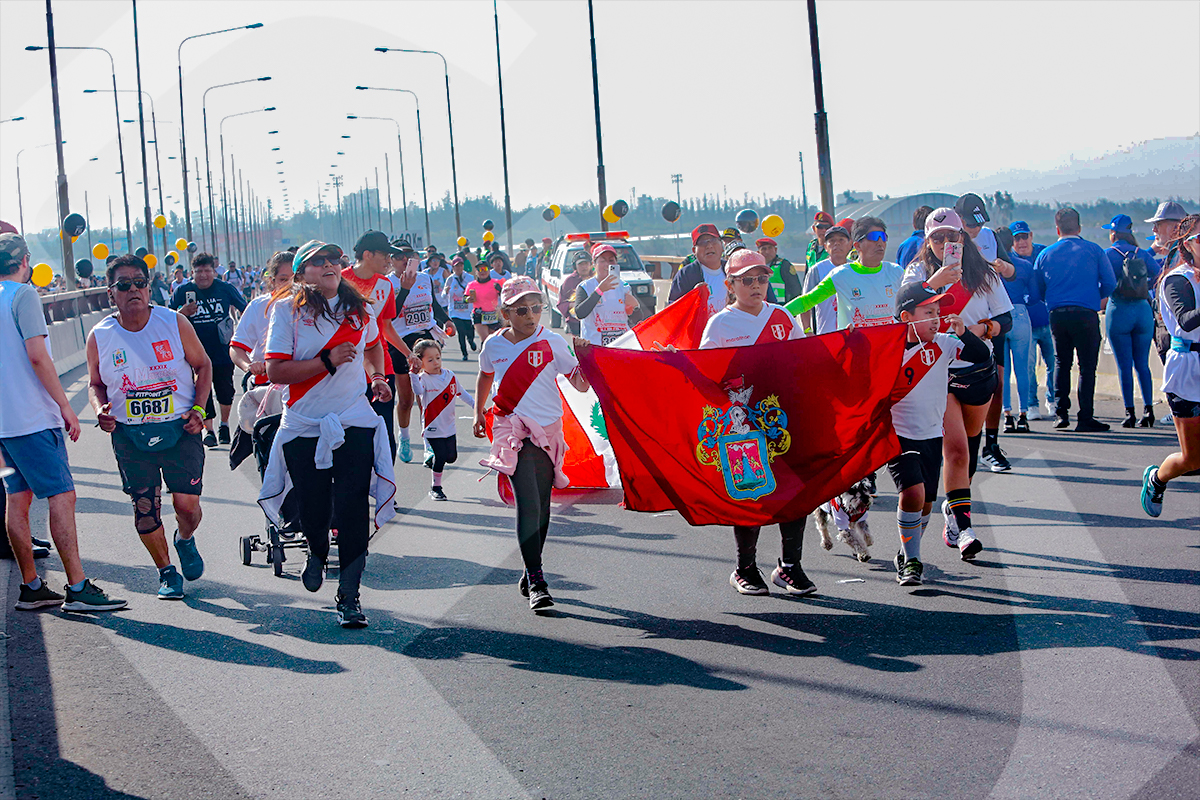 Alrededor de 6500 atletas inscritos, entre nacionales y extranjeros, participaron en la Maratón Internacional Virgen de la Candelaria.Atletas salen del túnel y pasan cerca de unos aficionados que, con silla en mano y bastón, llegan para presenciar la competencia.En la largada, un grupo de maratonistas encontró a una madre y su hijo cruzando a toda prisa para no interrumpir su paso.Disfrazados de Popeye y un dinosaurio, dos competidores captaron la atención de los presentes, ambos llegaron a la meta ovacionados.Una niña espera a su mamá durante la maratón. En esta competencia participaron muchos dúos de padres e hijos.Este año se logró un récord de participantes en la maratón más importante del sur del país.Con toda la actitud. Los atletas mostraron gestos de felicidad y satisfacción al llegar a la meta.El deporte te muestra muchas historias, como la de esta madre que corrió con su bebé de pocos meses de nacido, demostrando su amor por el fondismo.La maratón ha consolidado una hermosa tradición: familias completas que corren juntas para alcanzar la meta.El público premió con aplausos la participación de niños con habilidades diferentes.No podían faltar las mascotas, varios corredores decidieron participar en la competencia con sus engreídos.El huancaíno Yeison Canchanya, con el dedo al cielo, ganó la competencia de 42k con un tiempo de 2 horas, 24 minutos y 44 segundos.Gran cantidad de público llegó hasta el puente Chilina para alentar a los deportistas.Aidee Loayza se convirtió en la primera ganadora de los 42k en la categoría damas.La Cruz Roja ayudó a muchos atletas que requirieron asistencia médica tras llegar a la meta.Al culminar la competencia, los corredores se despojaron de sus zapatillas, agotados por el esfuerzo realizado.